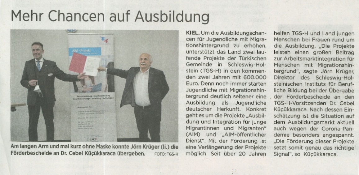 Scheck für Ausbildung junger Zuwanderer