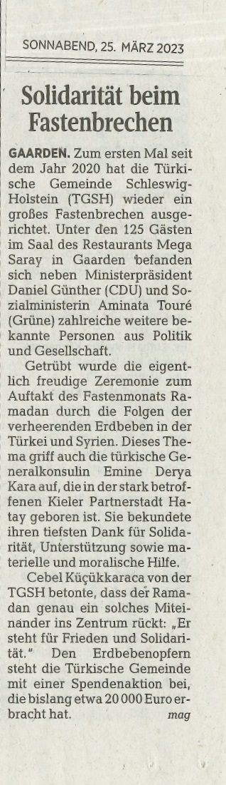 Solidarität mit Erdbebenopfern beim Fastenbrechen