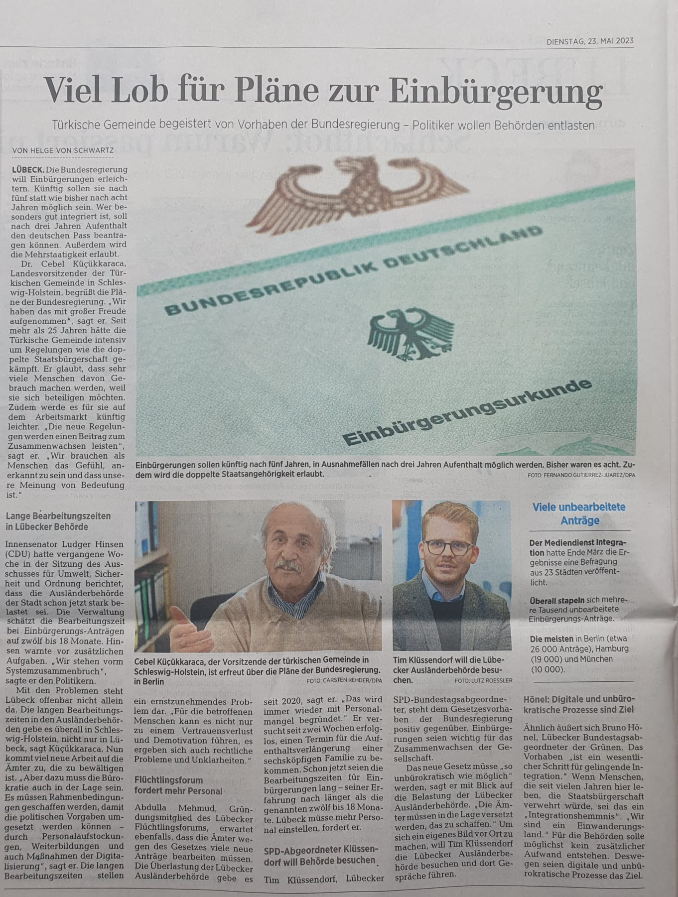 Viel Lob für Pläne zur Einbürgerung